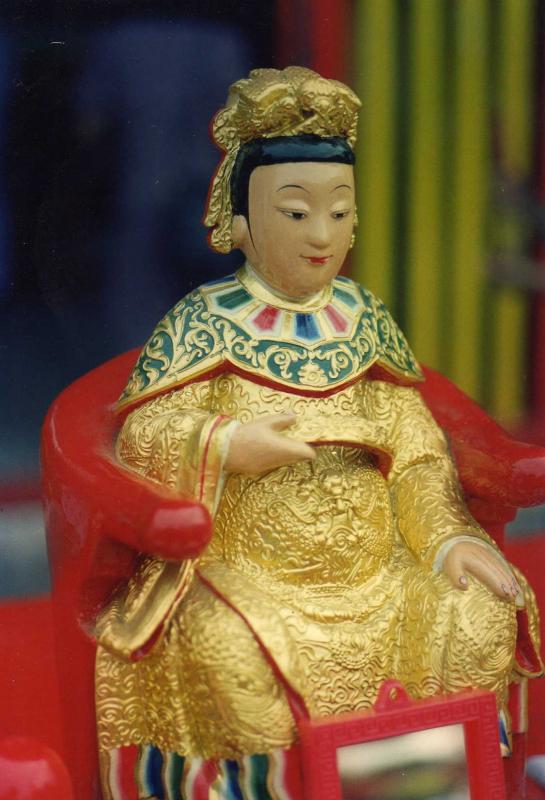 ภาพเจ้าแม่ลิ้มกอเหนียวองค์เดิมในวันพิธีเบิกเนตร ณศาลเจ้าเล่งจูเกียง จังหวัดปัตตานีในปีพ.ศ.2545