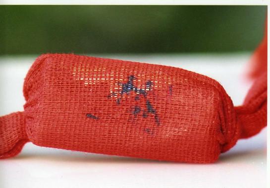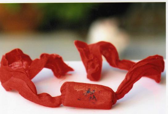 จะเห็นได้ว่ามีตัวอักษรเขียนว่า ลิ้ม เป็นตัวอักษรภาษาจีนประทับตราบนผ้าแดง จะแจกให้ศิษย์ยานุศิษย์เจ้าแม่ในงานพิธีแห่พระสมโภชเจ้าแม่ลิ่มกอเหนี่ยวทุกปี ไม่เคยนำมาจำหน่าย ไม่ว่าจะเป็นที่ไหน ในประเทศ หรือทั่วโลก ไม่เหมื่อนทางศาลเจ้าแม่ลิ้มกอเหนียวจังหวัดราชบุรี นำไปจำหน่ายในราคา200บาท ไม่รู้เหมื่อนกันว่านำไปได้อย่างไร เพราะว่าในการทำแต่ละปีก็ไม่พอให้กับศิษย์ยานุศิษย์เจ้าแม่ลิ้มกอเหนียวปัตตานี ที่จะประกอบพิธีหามพระลุยน้ำลุยไฟอยู่แล้ว