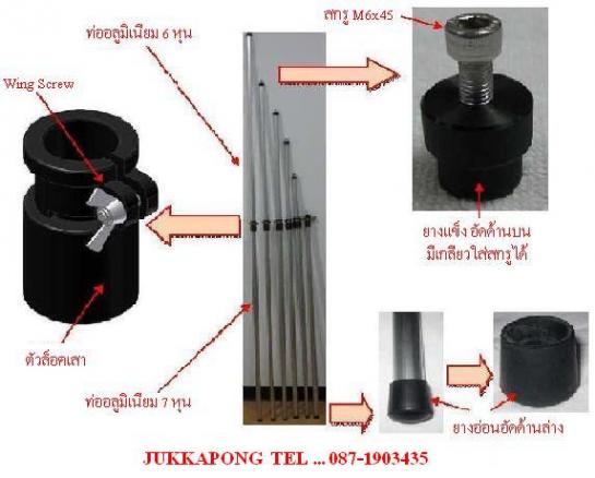 แนะนำทำเสาเต็นท์ เพื่อกันน้ำค้าง กันหมอก กันแดด ทำเองได้ง่ายๆด้วยตัวเองครับ สามารถหาซื้อท่ออลูมิเนียม ขนาด 6 หุน และ 7 หุน ซึ่งยาวเส้นละ 6 เมตร ราคาอยู่ที่ 140 บาท และ 220 บาท ตามลำดับ แล้วก็ตัดท่อนละ 1 เมตร จะได้ทั้งหมด เส้นละ 6 ท่อน ก็จะได้เสาที่สามารถส่วม เลื่อนเข้าเลื่อนออกได้ จากนั้นก็ซื้ออุปกรณ์พวกยางด้านล่างและด้านบนมาใส่ ส่วนตรงกลางก็ ซื้อตัวล็อคสำหรับเสาขนาด 6 หุน และ 7 หุน มาใช้ได้เลยครับ แล้วก็มีตัว Wing Screw (M4x12) สำหรับเป็นตัวบีบและคลายตัว Clamp เมื่อทำเสร็จแล้วเราก็จะได้เสาตั้งเต็นท์ เพื่อไว้กันหมอก กันน้ำค้าง กันลม ทั้งหมด 6 ชุดที่สามารถปรับขนาดความสูงได้ครับ