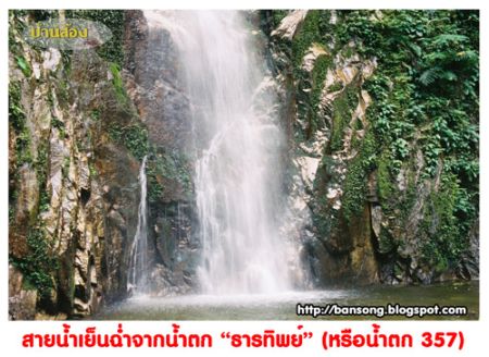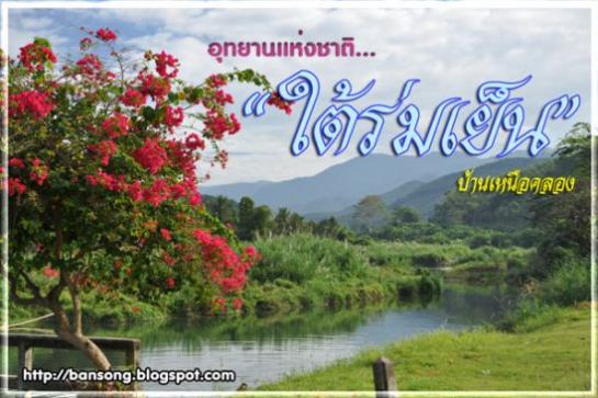 ..........ได้ทำความรู้จักกับ ภาพรวม ของตำบล บ้านส้อง กันไปแล้ว ต่อไปก็อยากจะขอแนะนำสถานที่ท่องเที่ยวทางธรรมชาติที่สำคัญแห่งหนึ่งของตำบล บ้านส้อง นั่นก็คืออุทยานแห่งชาติ ใต้ร่มเย็น อันเป็นอุทยานแห่งชาติที่สำคัญอีกแห่งหนึ่งของภาคใต้ หรือที่ชาวบ้านส้องรู้จักกันในนามของหมู่บ้าน เหนือคลอง อันมีจุดหมายปลายทางของการท่องเที่ยวอยู่ที่น้ำตก สามห้าเจ็ด โดยที่มาจากการที่ขบวนการ คอมมิวนิสต์ ที่เคยใช้หุบเขาแห่งนี้ เป็นฐานที่มั่นทางการทหารเมื่อครั้งอดีต ชาวบ้านจึงนำเอาชื่อฐานที่มั่นนั้นมาเรียกเป็นชื่อน้ำตก กันมาอย่างติดปากว่าน้ำตก สามห้าเจ็ด นั่นเอง...