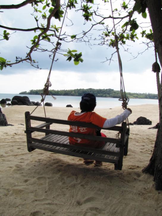 มีรถนำเที่ยวรอบๆเกาะฟรี ชายหาดที่นั่งอยู่นี้เป็นอีกฝากของเกาะที่รถนำเที่ยว
