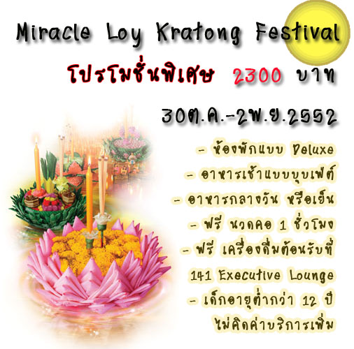 โรงแรมมิราเคิลแกรนด์ มีความยินดี เสนอโปรโมชั่นพิเศษ เทศกาลลอยกระทง