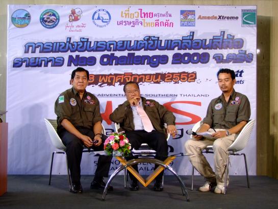 จังหวัดตรัง และแขกผู้มีเกียรติ ร่วมในงานแถลงข่าว การแข่งขันรถยนต์ขับเคลื่อนนสี่ล้อ รายการ Nas Challenge 2009 จังหวัดตรัง เมื่อวันที่ 28 ตุลาคม 2552 ณ อาคาร ททท. สำนักงานใหญ่