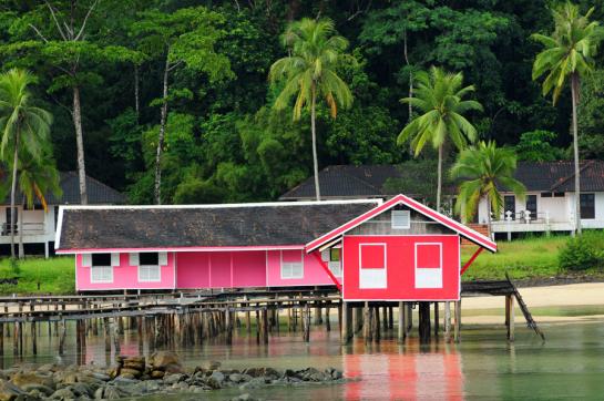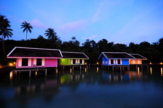 บ้านกลางน้ำ สีสันสดใส บนหาดทรายขาว