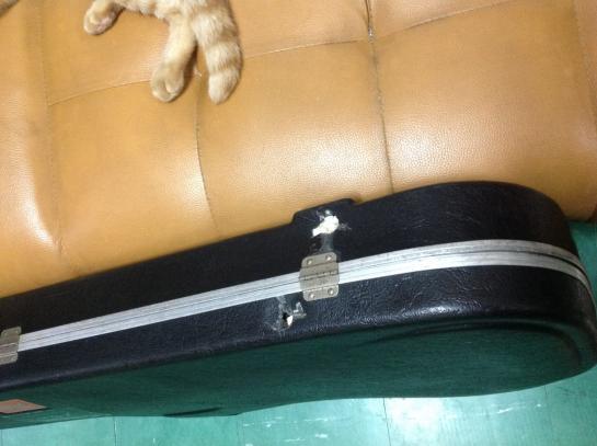 กระเป๋าใส่กีตาร์เป็นไฟเบอร์สีดำ ตุ่มรองพื้นสี่ตุ่มมันหลุดเป็นรูกลมๆจะซ่อมหรือดัดแปลงยังงัยดีครับ..
