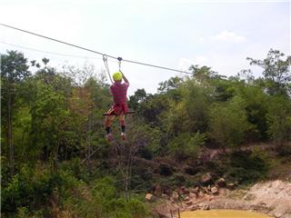 นี่โรยตัวจากยอดไม้ ข้ามบ่อน้ำ เสียวสบาย