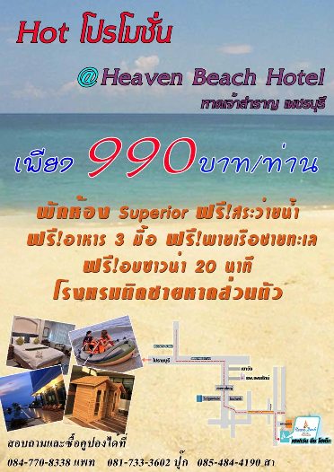 พักคลายร้อนกับ heaven beach hotel หาดเจ้าสำราญเพียง990บาท/ท่าน