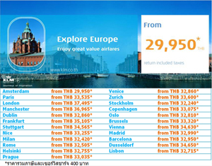 KLM ชวนท่องแดนยุโรปในราคาสุดคุ้ม เริ่มต้นเพียง 29,950 บาท