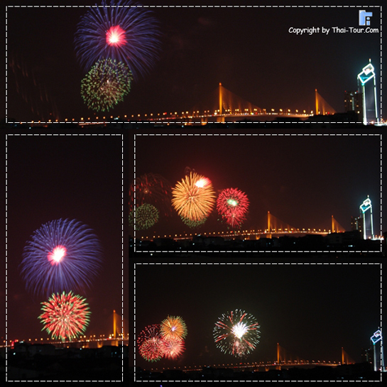 ภาพพลุวันเฉลิม 5 ธันวาคม 2550 บนสะพานพระราม 9 (สะพานแขวน)