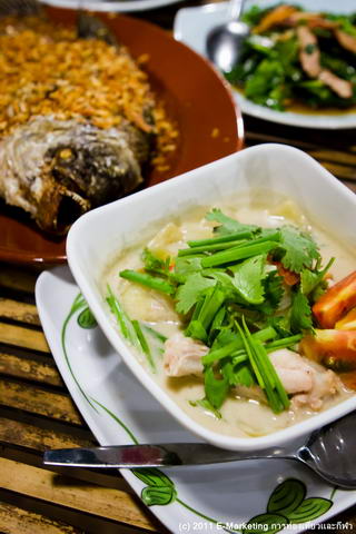 พูดถึงเรื่องอาหารสูตรเด็ด ของที่นี่ เมื่อได้เห็นหรือแม้แต่ได้กลิ่นลอยมาจากในครัว รับรองได้ว่าคุณจะอดใจไม่ไหวที่จะลองชิม ปลาแรด ทอดกระเทียม ของเรากรอบนอกนุ่มในด้วยปลาแรดตัวโตๆ สดๆ จากเขื่อนที่นี่ ผ่านการปรุงและทอดให้เหลืองกรอบ น่ารับประทานยิ่งนักเมื่อทานกับน้ำจิ้มรสเด็ด กลายเป็นเมนูที่ใครมาเป็นต้องลองชิมและยังมีเมนูขึ้นชื่ออีกหลายเมนูที่ห้าม พลาด เช่น แกงส้มปลากด ไก่ผัดเม็ดมะม่วง แกงเลียงกุ้งสด และอีกหลากหลายเมนูที่สามารถสั่งพิเศษได้ตามใจคุณ