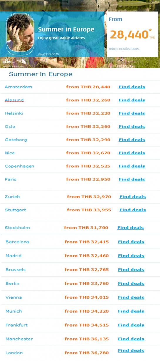 สัมผัสสุขสดชื่นรับซัมเมอร์ที่ยุโรปกับ KLM เริ่มต้นเพียง 28,440 บาท