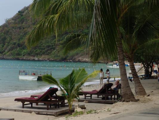 สถานที่น่าสนใจบนเกาะเสม็ด และเกาะใกล้เคียง ชายหาด หาดต่างๆ ส่วนใหญ่อยู่ทางด้านตะวันออกของเกาะ แต่ละหาดอยู่ในอ่าวเล็ก ๆ มีความยาวประมาณ 200 เมตร เรียงตามลำดับจากทิศเหนือไปทิศใต้ ดังนี้ หาดทรายแก้ว หาดหินโคร่ง หาดคลองไผ่ อ่าวพุทรา อ่าวทับทิม อ่าวนวล อ่าวช่อ อ่าวคอก อ่าวเทียน อ่าวหวาย อ่าวกิ่วหน้านอก อ่าวกะรัง ทางด้านตะวันตกมีหาดทรายอยู่แห่งเดียว คือ ที่อ่าวพร้าว จากหาดทรายแก้วและหาดวงเดือน สามารถเดินทางไปหาดอื่น ๆ ได้โดยใช้บริการรถรับจ้าง หรือเดินเท้าไปเอง