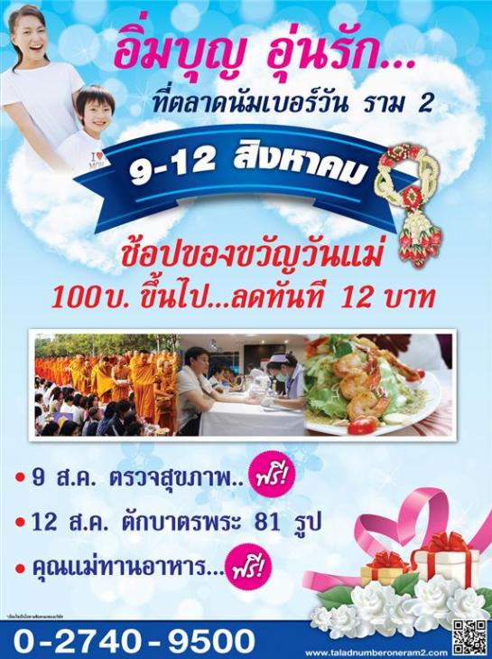 ตลาดนัมเบอร์วัน ราม 2 จัดกิจกรรมวันแม่ อิ่มบุญ อุ่นรัก สานสัมพันธ์รักครอบครัว