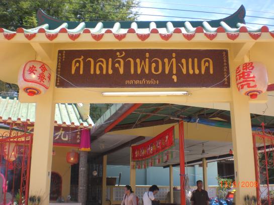 รูปป้ายศาลเจ้าพ่อทุ่งแค ตลาดเก้ห้อง (ตลาดบน)