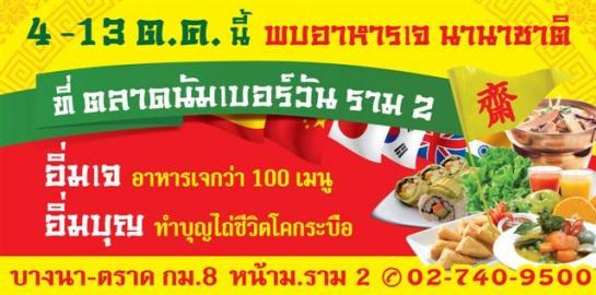 ตลาดนัมเบอร์วัน ราม 2 จัดเทศกาลงานเจนานาชาติ อิ่มเจ อิ่มบุญ 4-13 ตุลาคมนี้