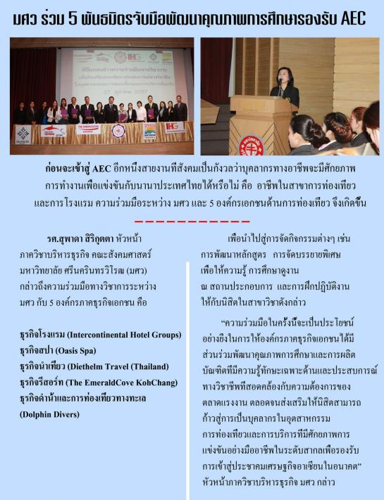 มศว ร่วม 5 ธุรกิจท่องเที่ยว พัฒนา นศ.สู่ AEC