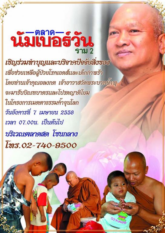 ตลาดนัมเบอร์วัน ราม 2 ขอเชิญร่วมทำบุญตักบาตรกับวัดพระบาทน้ำพุ ในวันที่ 7 เม.ย.25