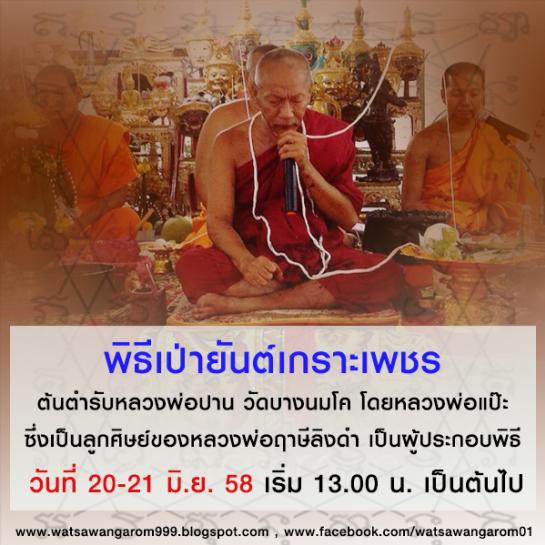 ขอเชิญร่วมพิธีเป่ายันต์เกราะเพชร (เสาร์ 5) ประจำปี 2558
