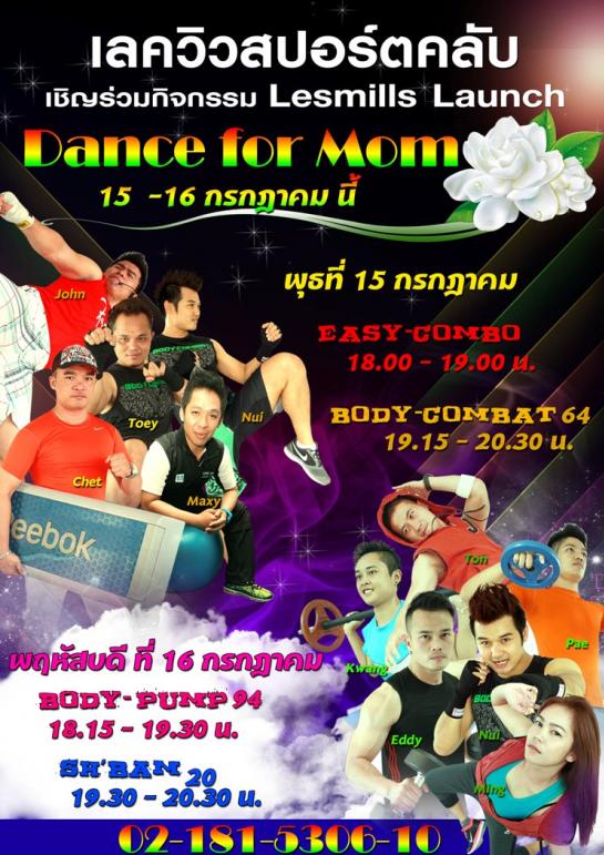 เลควิวสปอร์ตคลับชวนสมาชิกร่วมกิจกรรม Lesmills Launch Dance for Mom 15-16 ก.ค.น