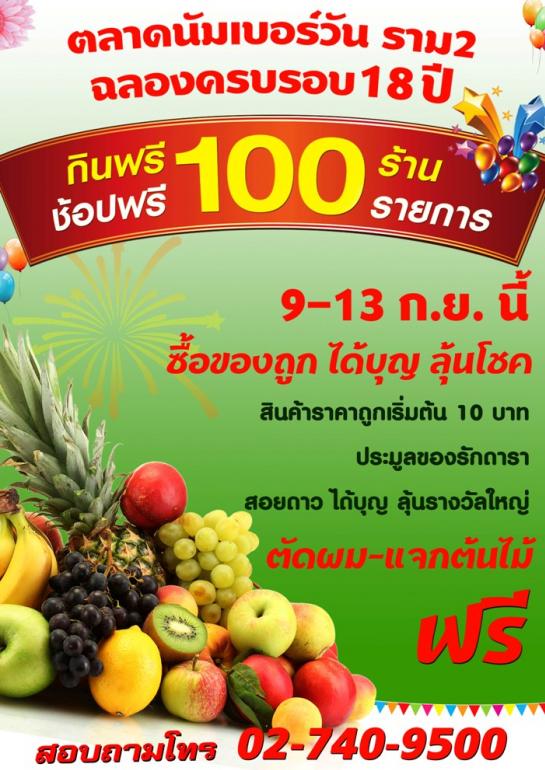 ตลาดนัมเบอร์วัน ราม 2 ฉลองครบรอบ 18 ปี กินฟรี 100 ร้าน ช้อปฟรี 100 รายการ