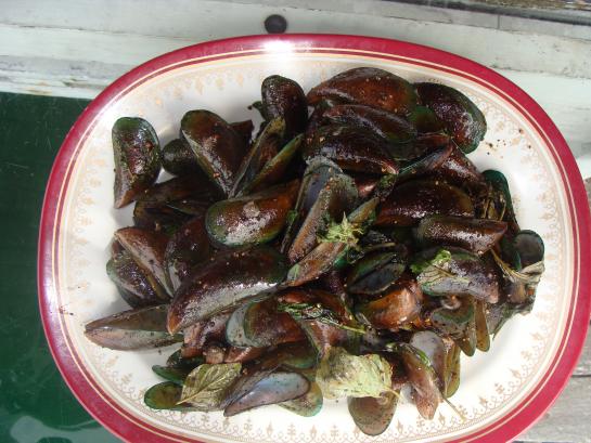 สักพักทางแพก็ยกออเดิร์ฟมาเสริฟให้ทานค่ะ เป็นหอยแมลงภู่ผัดพริกไทยดำ กะ แตงโม ค่ะ หอยแมลงภู่ผัดพริกไทยดำ อร่อยดีค่ะ ไม่เคยทานที่ไหนมาก่อนเลยอะ แปลงดี