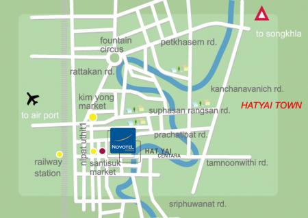 ハジャイのセントラルデパートの上に位置し、ショッピングやエンターテイメントセンター:ノボテルセントラルスコンタ、ハジャイは、市内の商業の中心部に位置しています。ホテルは、空気(空港からホテルまで車で約20分)、バス、または電車を利用しバンコクからアクセスすることができます。