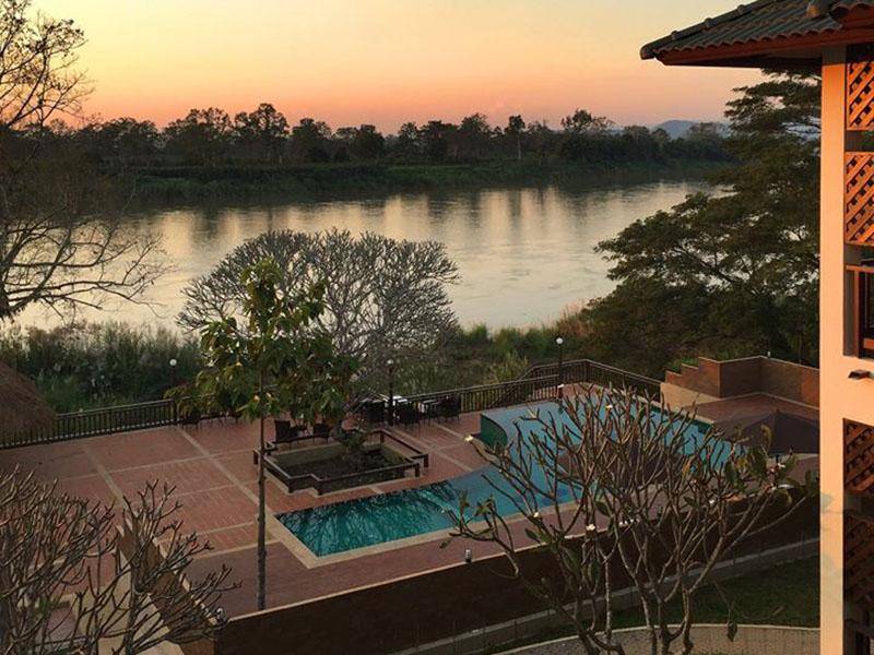 รีสอร์ทริมแม่น้ำโขง ตั้งอยู่บริเวณหอฝิ่น อุทยานสามเหลี่ยมทองคำ บ้านพักหลังเดี่ยวอยู่บนไหล่เขา แต่ละห้องมีระเบียงที่สามารถมองเห็นวิวทิวทัศน์ของแม่น้ำโขง