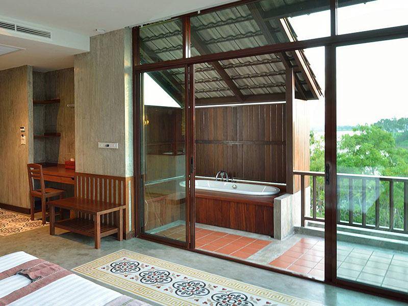 บ้านไทย รีสอร์ท สามเหลี่ยมทองคำ ออกแบบสไตล์โมเดิร์น ประดับด้วยชิ้นงานลายกนก มีความสวยงามภายในตกแต่งอย่างทันสมัยด้วยเฟอร์นิเจอร์คุณภาพ พร้อมพนักงานต้อนรับ 24 ชม.