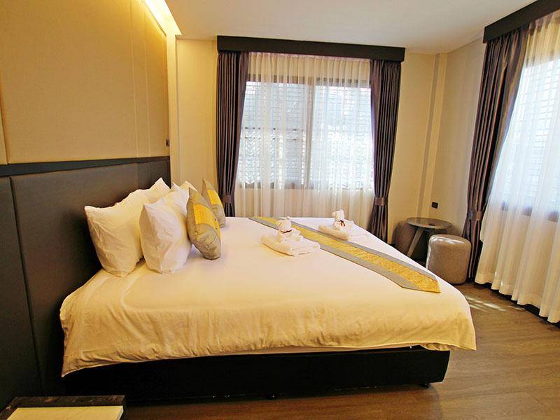 โรงแรมออกแบบมาสไตล์ บูติค ดูทันสมัย พร้อมสระว่ายน้ำอยู่กลางรีสอร์ท มีห้องอาหาร ห้องประชุมสัมมนา สระว่ายน้ำขนาดมาตรฐานไล่ระดับน้ำลึก-ตื้น