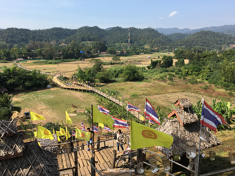 สะพานไม้ไผ่สานความยาวกว่า 500 เมตร ความกว้างของสะพาน 2 เมตร ที่เกิดจากแรงศรัทธาของชาวบ้าน ที่ร่วมแรงรวมใจกันสร้างสะพานไม้เพื่อให้พระภิกษุสงฆ์ใช้เป็นเส้นทางสัญจรลงมาบิณฑบาตรในหมู่บ้านซูตองเป้ สะพานไม้แห่งศรัทธา สะพานไม้ไผ่ยาวที่สุดในประเทศไทย ณ เมืองสามหมอก จังหวัดแม่ฮ่องสอน