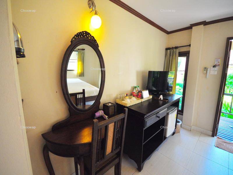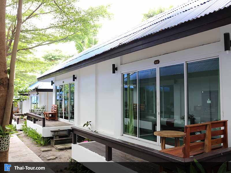 รีสอร์ทอยู่ห่างจากหาดประมาณ 300 เมตร มีห้องพักสำหรับคู่รัก เเละ กลุ่มเพื่อน 4 คน มีสระว่ายน้ำ บริการพาไปเที่ยวชมรอบๆเกาะ