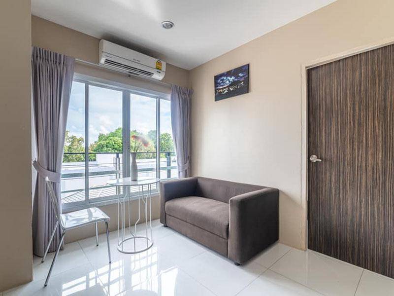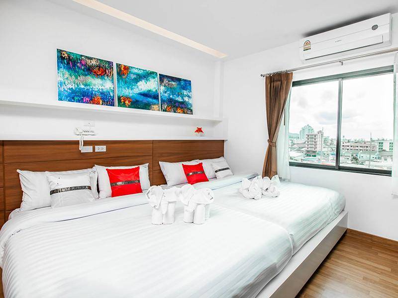 โรงแรมที่พัก สไตล์โมเดิร์น ใน จ.ภูเก็ต เดินทางสะดวก ห่างจากสนามบินนานาชาติ 1.6 กม. ห้องพักเป็นห้องแอร์ มีทีวีระบบเคเบิล์ ห้องน้ำ มีน้ำอุ่น และอุปกรณ์ในห้องน้ำ ตู้เย็น ระเบียง พร้อมน้ำดื่ม 2 ขวดราคา 590 บาท