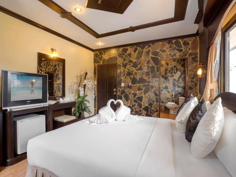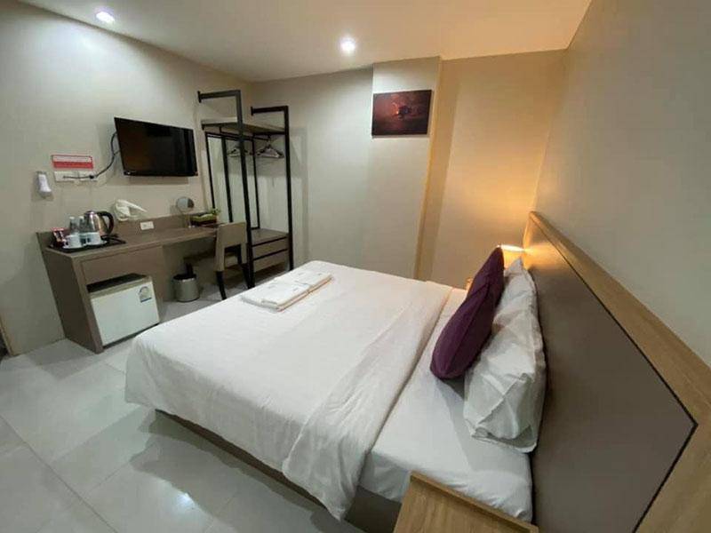 โรงแรมที่พัก ราคาถูก ใน เมืองภูเก็ต เดินทางสะดวก ห้องพักเป็นห้องแอร์ มีทีวีระบบเคเบิล์ ห้องน้ำ มีน้ำอุ่น และอุปกรณ์ในห้องน้ำ ตู้เย็นพร้อมน้ำดื่ม 2 ขวด เครื่องชงชา/กาแฟราคา 600 บาท