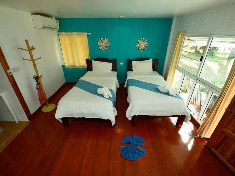 ห้องพักหลายรูปแบบ ชั้นเดียวหลังเล็กๆ ไปจนถึงแบบครอบครัว ทั้งแบบพัดลมและแอร์ มีระเบียงนั่งพักผ่อนชมหาดทราย