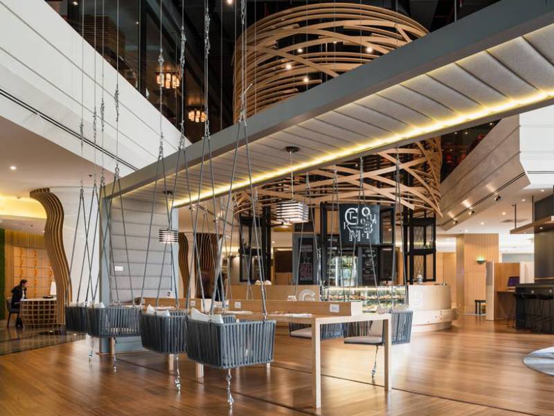 ตั้งอยู่ใกล้กับห้างสรรพสินค้าขนาดใหญ่สามแห่ง ได้แก่ โรบินสัน คาร์ฟูร์ และจัสโก้ นอกเหนือจากห้างสรรพสินค้าและสถานบันเทิงแล้ว ผู้เข้าพักยังจะมีโอกาสได้สัมผัสกับสถานที่สำคัญอื่นๆ อย่างศูนย์วัฒนธรรมอีกด้วย การเดินทาง ใช้เวลาเดินเพียงสองนาทีสู่สถานีรถไฟฟ้าใต้ดินห้วยขวาง ช่วยให้แขกผู้เข้าพักเดินทางไปตลาดนัดสวนจตุจักรและแม่น้ำเจ้าพระยาได้อย่าง สะดวก โรงแรมมีภัตตาคารมากมายให้ผู้เข้าพักได้เลือกสรร โดยจำหน่ายอาหารตำรับจีน ญี่ปุ่น และยุโรปหลากชนิด