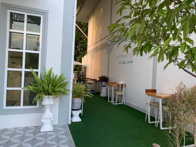โรงแรมที่พัก สไตล์โมเดิร์น ในเมืองน่าน เดินทางสะดวก ห่างจากเทสโก้โลตัส น่าน 2.8 กม. ห้องพักเป็นห้องแอร์ มีทีวีระบบเคเบิล์ ห้องน้ำ มีน้ำอุ่น และอุปกรณ์ในห้องน้ำ ตู้เย็น เฟอนิเจอร์ พร้อมน้ำดื่ม 2 ขวด