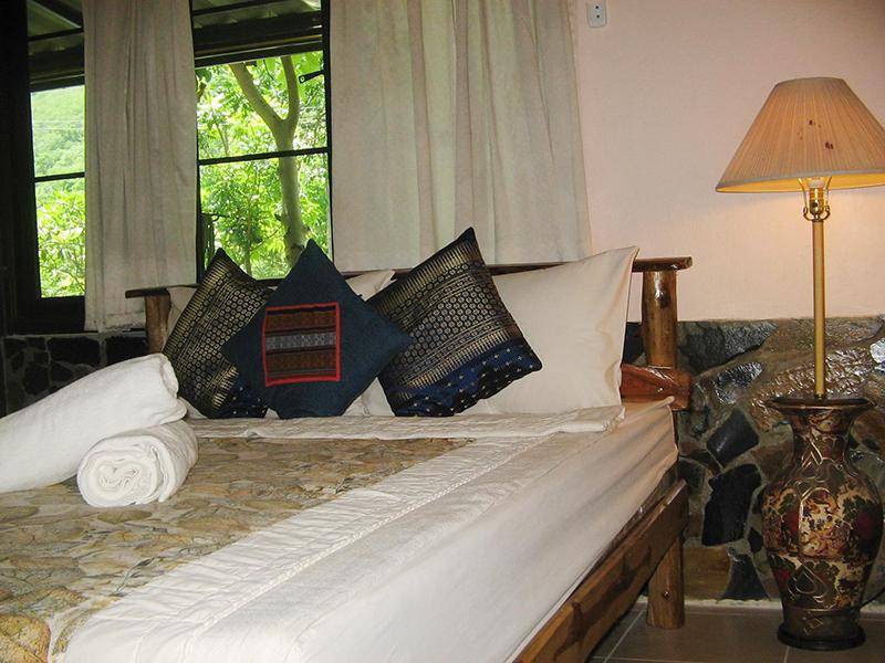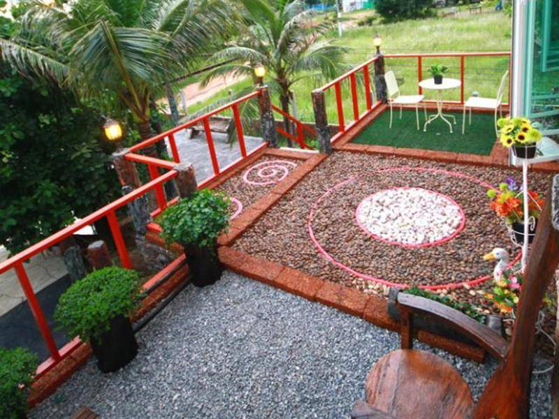 บ้านพักสไตล์บาหลี ท่ามกลางธรรมชาติ สวนแมกไม้นานาพันธุ์ ห้อมล้อมไปด้วย บรรยากาศ สีเขียวขจีของต้นไม้ ดอกไม้สีสันสดใส และม่านน้ำตกที่ไหลผ่านสะพานทอดข้ามสองข้างทางประดับด้วยน้ำพุ ไฟใต้น้ำ เป็นลูกเล่นในการตกแต่ง ที่สร้างความสวยงามในยามค่ำคืน ห้องพักตกแต่งอย่างเรียบง่าย ห้องน้ำกลางแจ้ง