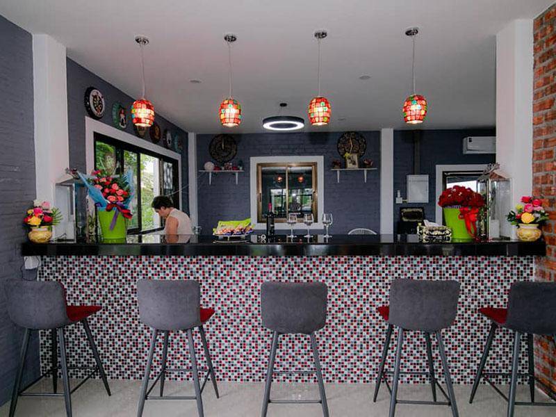 แวดล้อมด้วยธรรมชาติ ห้องพักภายในที่พัก ตกแต่งได้อย่างงดงาม โอ่โถง โล่งสบาย ตามสไตล์รีสอร์ท มีสิ่งอำนวยความสะดวกมากมาย สวน เครื่องปรับอากาศ เคเบิล ทีวี ระบบจานดาวเทียม ลานจอดรถ อินเตอร์เน็ต Wi -Fi มาตรฐานโรงแรม