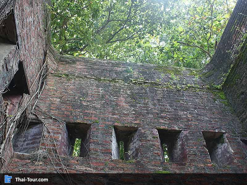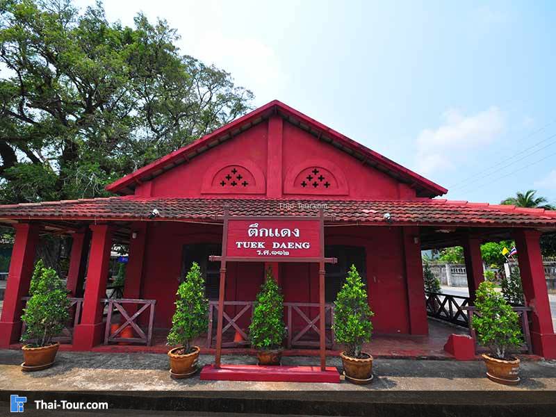 เป็นอาคารชั้นเดียวก่ออิฐถือปูน กว้าง 7 ม. ยาว 32 ม. ทาสีแดงชาด ภายในแบ่งเป็น 5 ห้อง มีประตูเปิดถึงกันหมด มีระเบียงสองด้านตามแนวยาวของตัวตึก สร้างขึ้นในบริเวณที่ตั้งป้อมปืนเก่าแก่และได้รับการบูรณะในสมัยรัชกาลที่ 3 เพื่อรับศึกญวน ฝรั่งเศสได้รื้อตึกจากตัวป้อมมาสร้างตึกแดงเพื่อใช้เป็นที่พักนายทหารและกองรักษาการณ์ปากน้ำแหลมสิงห์