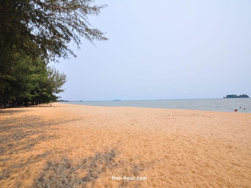 หาดทรายขาวปนเทายาวเหยียดสุดสายตา หน้าหาดกว้าง 100 ถึง 200 เมตร มีบรรยากาศสงบเงียบ ชายหาดมีต้นมะพร้าวเป็นระยะๆ เหมาะสำหรับเป็นที่พักผ่อนหย่อนใจ มีร้านอาหารและที่พักเปิดให้บริการ ราคาไม่แพงมากเหมือนพัทยาหรือเกาะเสม็ด อยู่ห่างจากตัวเมืองจันทบุรี 60 กิโลเมตร