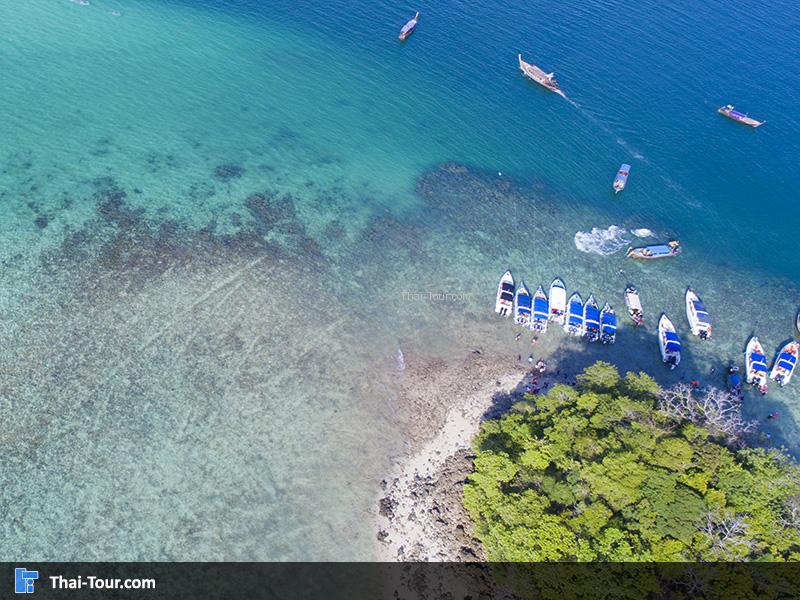 ด้านหน้าของเกาะจะมีหาดทรายสีขาวละเอียด ที่เกิดจากการสลายตัวทับถมของเหล่าปะการัง เป็นจุดพักผ่อนที่ดียิ่ง น้ำทะเลใส สามารถมองเห็นพื้นทรายและปะการังน้ำตื้นได้ในช่วงน้ำลงเต็มที่ ด้านเหนือของเกาะจะเป็นหาดหินกลมมนเรียงราย ชาวบ้านเรียกบริเวณนี้ว่า หาดหินงาม ตัวเกาะนั้นตั้งอยู่ในเขตน้ำลึก จึงทำให้สามารถชมได้ทั้งปะการังน้ำตื้นและปะการังน้ำลึกโดยที่ไม่ต้องออกห่างจากเกาะไปไกลนัก