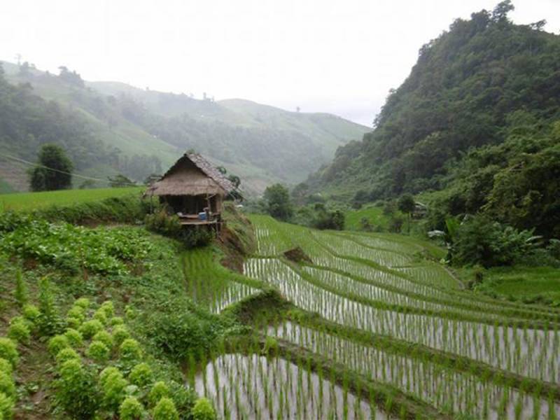 บ้านแม่กลางหลวง หมู่บ้านชาวกะเหรี่ยง สัมผัสในหุบเขานาขั้นบันไดอันเป็นพื้นที่ลุ่มน้ำ ล้อมรอบด้วยวิวภูเขาที่อบอุ่น เหมือนได้กลับไปในวัยเด็กอีกครั้ง