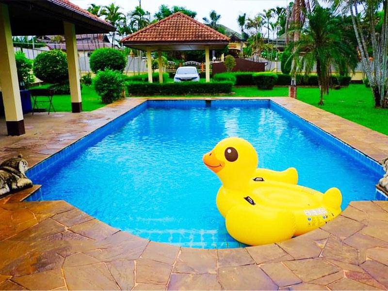 วิลล่า 2 ชั้น 4 ห้องนอน 5 ห้องน้ำ สระว่ายน้ำระบบคลอรีน ขนาด 4*7 เมตร ไล่ระดับน้ำลึก ลึกสุดประมาณ 1.7 เมตร ผสมทันสมัย คลาสสิคหรูหรา เหมาะสำหรับครอบครัว เพื่อนฝูงเลี้ยงสังสรรค์ ฟรี wi-fi จอดรถในบ้านได้ 2 คัน