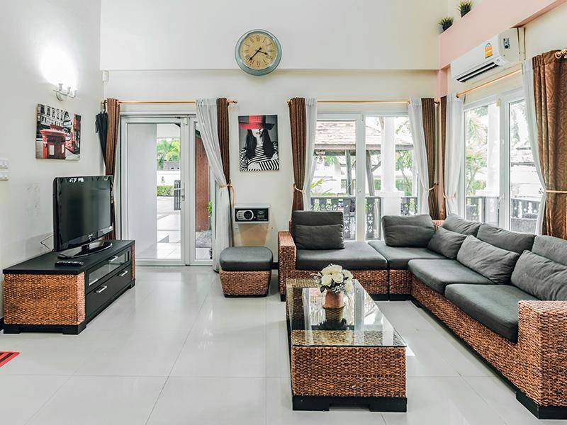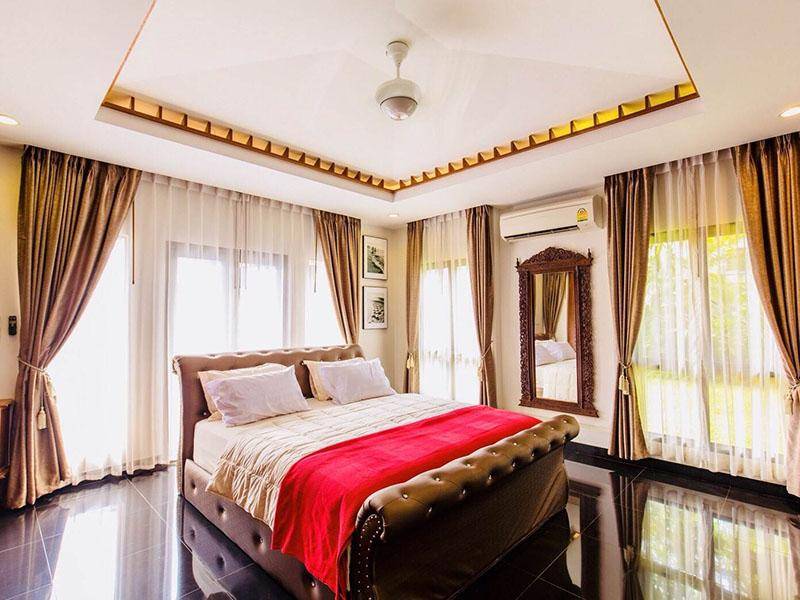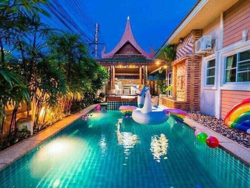 หรูหราทันสมัยสไตล์ไทย มี 6 ห้องนอน 5 ห้องน้ำ ห้องครัว และห้องนั่งเล่น สามารถนอนได้ถึง 12 ท่านวิลล่าแห่งนี้เป็นตัวเลือกสำหรับเพื่อนกลุ่มใหญ่และครอบครัว