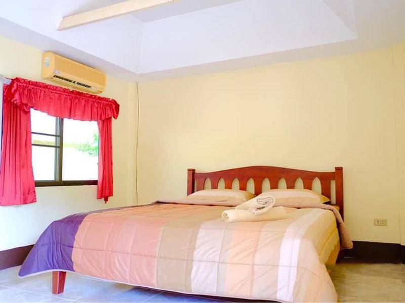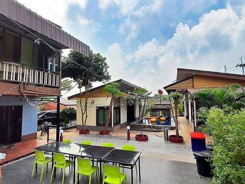 บ้านพักบรรยากาศร่มรื่น เหมาะสำหรับมาพักผ่อนกับคราอบครัว เพื่อนฝูง ทำกิจกรรมร่วมกันได้ดี ห้องพัก มีแอร์ ทีวี สระว่ายน้ำขนาดพอดี สิ่งอำนวยความสะดวกอื่นๆ ได้แก่ ห้องครัวสำเร็จรูป 2 ห้อง พร้อมอุปกรณ์ทำครัว เช่น จาน ชาม แก้ว หม้อหุงข้าว กระดิกน้ำร้อนราคา 10,260 บาท