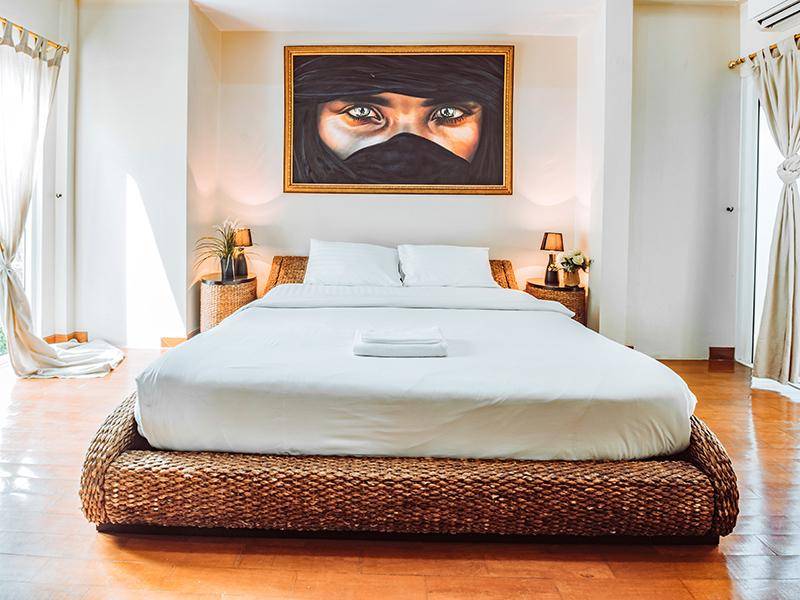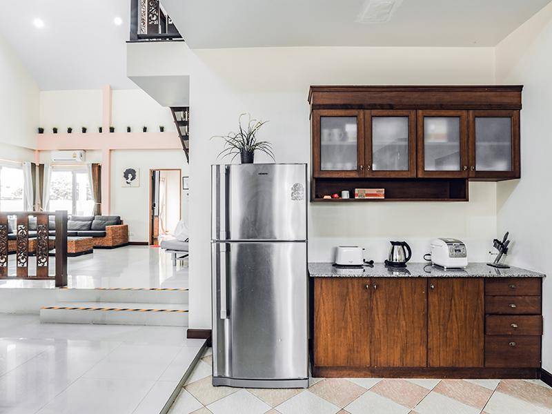 ห้องนอนวิลล่า เหมาะกับกับครอบครัวขนาดกลาง 7 ห้องนอน 7 ห้องน้ำมาพร้อมอ่างอาบน้ำ และอุปกรณ์อาบน้ำและไดร์เป่าผม พื้นที่ใช้สอยเปิดห้องครัวสไตล์ตะวันตกที่มีอุปกรณ์ครบครัน ได้แก่ ไมโครเวฟ, กาน้ำร้อน, เตาไฟฟ้า, หม้อหุ้งข้าว, เครื่องปิ้งขนมปัง, และตู้เย็นขนาดใหญ่, มีสระว่ายน้ำส่วนตัว และการใช้สิ่งอำนวยความสะดวกรูปแบบหลากหลาย