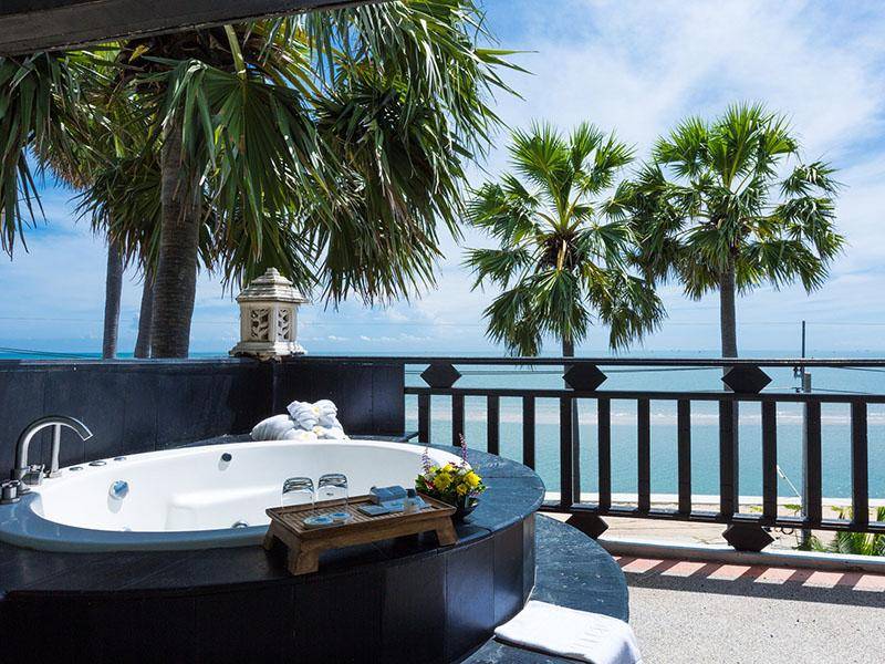 มีเอกลักษณ์ของการผสมผสานของสไตล์ไทยร่วมสมัย มีการตกแต่งที่หรูหราห้องสวีทพร้อมวิวทะเลที่ดีมองของอ่าวไทย ห้องพักทุกห้องติดตั้งเครื่องปรับอากาศ มีโทรศัพท์ทางไกลระหว่างประเทศ โทรทัศน์ มินิบาร์และตู้เย็น เครื่องชงกาแฟและระเบียงส่วนตัว ห้องน้ำห้องอาบน้ำฝักบัวน้ำฝนและอ่างอาบน้ำ