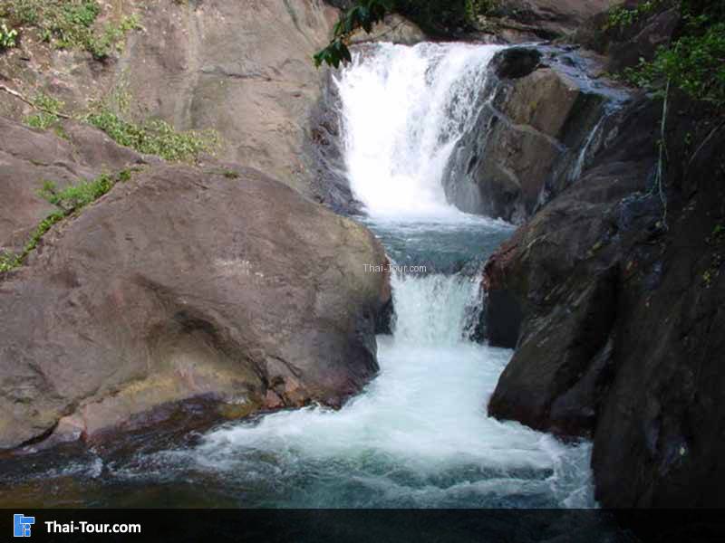 น้ำตกขนาดกลาง มี 4 ชั้น ลักษณะเป็นธารน้ำไหลผ่านมาเป็นชั้นๆ ตามร่องหินแกรนิตสีดำ มีหน้าผาสูงชันจนเกือบตั้งฉากบริเวณโดยรอบเป็นป่าดงดิบ อากาศร่มเย็นสบาย เหมาะแก่การตั้งแค็มป์และเล่นน้ำตก