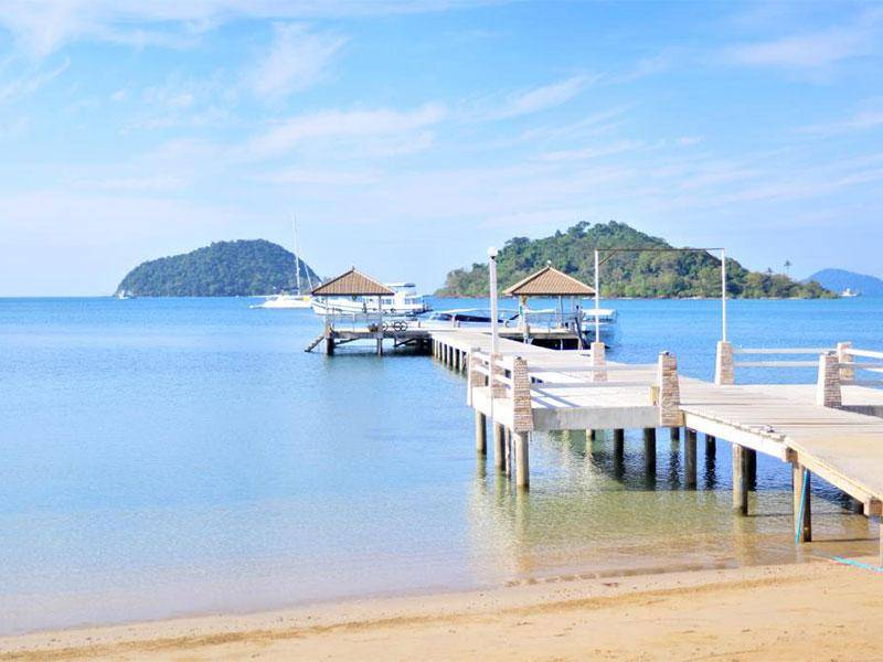 เป็นหมู่บ้านสุดท้ายทางตะวันออก ติดชายแดนกัมพูชาป็นตลาดการค้าชายแดนไทย-กัมพูชา ที่มีบรรยากาศคึกคัก นักท่องเที่ยวสามารถข้ามไปเที่ยวยังเขต จ.เกาะกง ประเทศกัมพูชาได้ เมื่อเดินทางผ่านหลัก กม. 81-82 จะผ่านส่วนที่แคบที่สุดของประเทศไทย บริเวณบ้านโขดทรายหมู่ที่ 2 ต.หาดเล็ก อ.คลองใหญ่ หากดูแผนที่จะเห็นเป็นติ่งแหลมยื่นขนานไปกับแนวเขาบรรทัดมีความกว้างเพียง 450 ม. ด้านขวาติดทะเล ด้านซ้ายติดชายแดนกัมพูชา