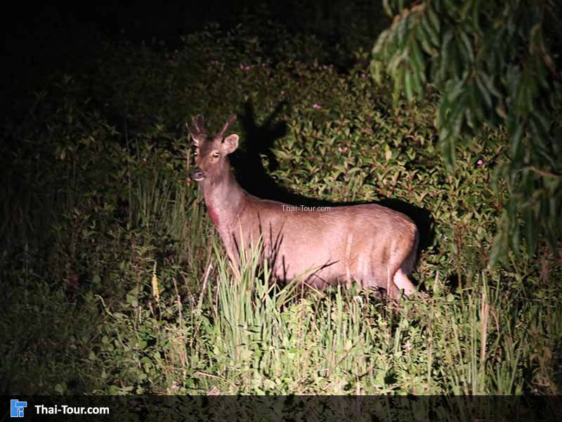ที่อุทยานแห่งชาติเขาใหญ่จะมีกิจกรรมนึงที่น่าสนใจก็คือ "ส่องสัตว์" ก็คือต้องติดต่อเช่ารถจากเจ้าหน้าที่เป็นรถกระบะพร้อมไกด์ ที่ถือไฟฉายแรงสูง ขับวนไปมาแถวย่านที่พักและที่ทำการอุทยานที่กลางคืนจะมีกวางป่า และเก้งออกมาเป็นจำนวนมาก คืนไหนโชคดีก็อาจได้เห็นช้างมากินโป่ง